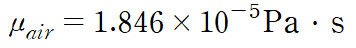 공기가 이상기체이므로 이상기체 방정식에서 밀도를 얻고 점성계수는 테이블에서 가져오겠습니다.