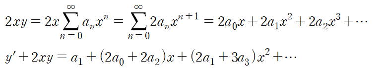 이것을 미분방정식에 대입하여 항별로 정리하면 다음과 같다.