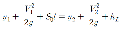 S0는 개수로의 기울기를, hL은 에너지 손실수두(head loss)를 의미합니다.