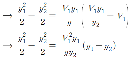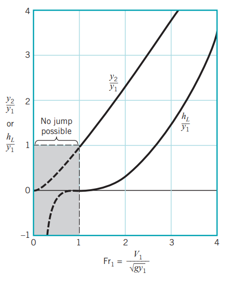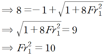 이것이 의미하는 것은 수력도약이 일어나기 위해서는 프루드 수(Fr)가 1보다는 커야한다는 것을 의미합니다.
