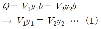 정상상태 유동이기 때문에 (1)지점에서의 유량와 (2)지점에서의 유량이 같습니다.