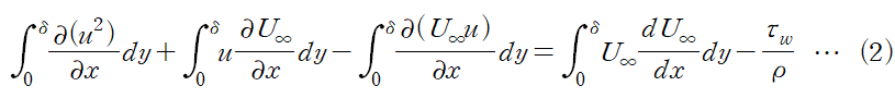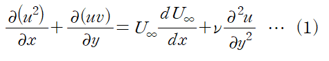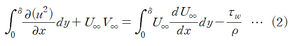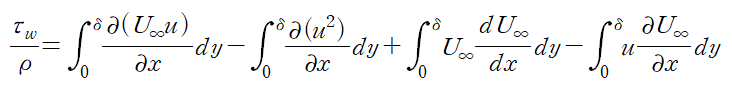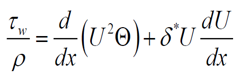 Momentum Integral Equation, Karman Integral Equation(von karman이 1921년에 이 방정식을 유도) 라 불리는 운동량 적분 방정식이란 경계층 이론의 주요 요소인 배제 두께와 운동량 두께로부터 벽면에 작용하는 전단응력을 구하는 방정식입니다.