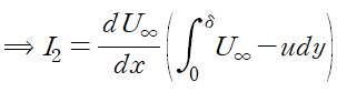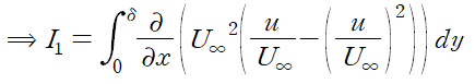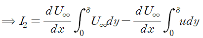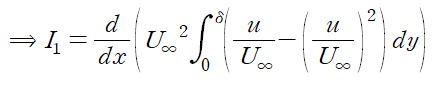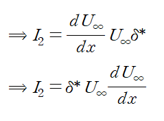 앞서 I1에서 운동량 두께를 유도했듯이 배제 두께를 대입할 수 있도록 피적분함수를 정리합니다.