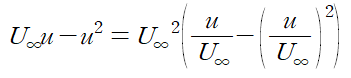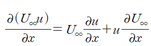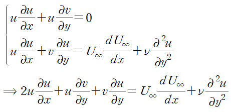 이때 U∞는 경계층 외부에서의 x방향 속도를, u는 경계층 내부를 포함하는 유체의 x방향 속도를 의미합니다.