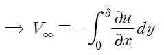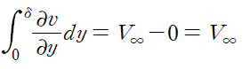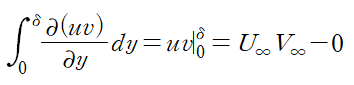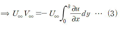 (4) 연속방정식의 양변을 y에 대해 적분함으로 V∞을 소거합니다.