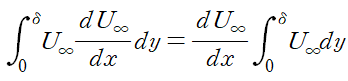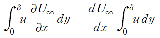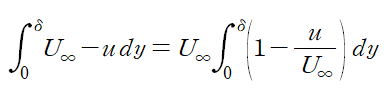 이때 U∞(free stream velocity)는 y와 무관하므로 적분기호 밖으로 빠져나올 수 있습니다.
