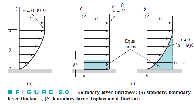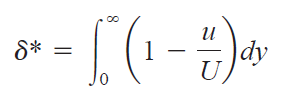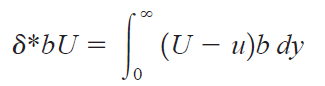 유량을 통한 배제 두께의 수학적 정의는 다음과 같습니다. (Q = Av 사용한 것)