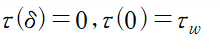 경계층에서 유체가 본래 유동속도를 회복하므로 경계층에서 전단응력은 0이고 벽면에서 전단응력을 wall shear stress라 하므로