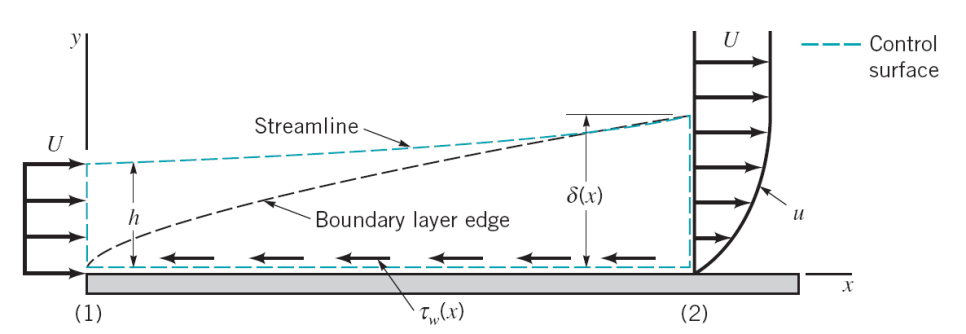 1. 벽면 전단응력(Wall shear stress)으로부터 항력(Drag)을 계산할 수 있기에 운동량 적분 방정식을 사용하는 것이다.