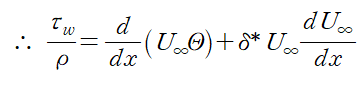 순서대로 τw는 wall shear stress, ρ는 유체의 밀도, U는 free stream velocity(또는 U∞), Θ는 momentum thickness, δ*는 displacement thickness 입니다.
