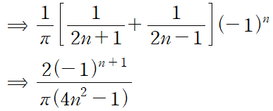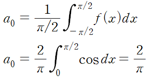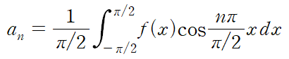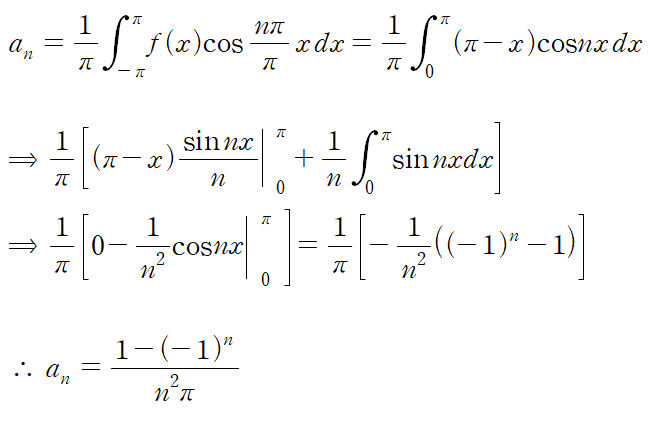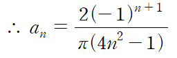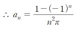 다음으로는 f(x)의 형태가 y축 대칭이므로 bn = 0 이라는 사실을 알 수 있습니다