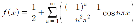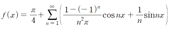 f(x)의 푸리에 급수 전개는 다음과 같습니다.