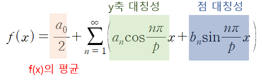 1) 상수항인 a0/2는 f(x)의 평균값을 의미 (함수의 평균값 = 면적 / 한 주기)