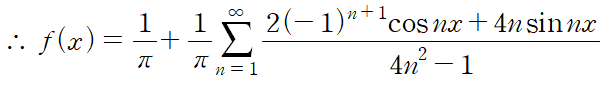 최종적인 f(x)의 푸리에 급수 전개는 다음과 같습니다.