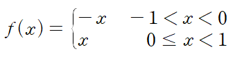 [-1,0]에서의 넓이는 직각삼각형의 넓이이니 1/2, [0,1]에서의 넓이도 마찬가지로 1/2입니다.