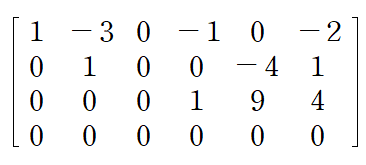 두 번째 행의 Leading entry의 위가 -3(0이 아님)이므로 Reduced echelon form은 아니네요 세 번째 행의 Leading entry에서도 REF가 아님을 알 수 있구요