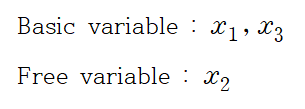 이것은 각 열마다 Leading entry가 존재하느냐로 따질 수 있으며 있는 경우 Basic variable, 없다면 Free variable 입니다