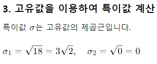 의 고유값에 루트를 씌운 것과도 같습니다.