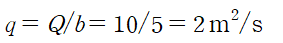 유량 Q를 폭 b(width)로 나눈 것을 단위폭당 유량 q라 합니다.
