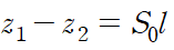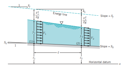 수로의 경사(기울기)를 S0(bottom slope)라 하면 z1-z2= S0l 입니다.