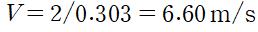 하류에서의 유속(V)은 다음과 같습니다.