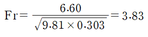 따라서 하류에서의 Froud 수는 다음과 같습니다.