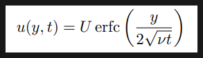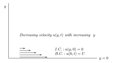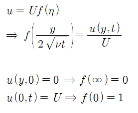 정지해있던 무한평판이 갑자기 움직이는 상황(transient; unsteady problem)