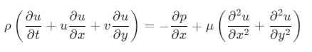 직교좌표계에서 x방향 나비에 스토크스 방정식은 다음과 같습니다.