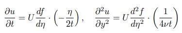 또한 아래와 같이 u = Uf(η)라 가정합니다.