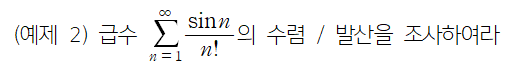 도 수렴한다는 것이 절대수렴의 의미인데요, 비판정법에 의해 수렴이 결정되면 그냥 수렴보다는 조금 더 강력한 절대수렴이라고 기억해두시면 됩니다.