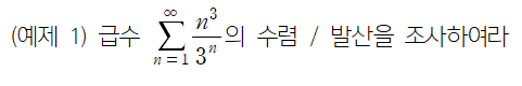 많은 학생들이 급수의 수렴/발산에 대해 질문합니다. 그다지 어려운 문제들이 아닌데도 아예 감을 잡지 못하고 가져오는 모습을 보면 참.. 슬퍼요.. 남들이 떠먹여주는 공부만 주구장창 해와서 그런가 스스로 배워야 하는 공부를 어떻게 해야 하는지 감조차 잡지 못한 것 같아요. 이게 사교육의 폐해인가.. 싶기도 합니다. 지난 번에 교대급수 판정법에 대해 포스팅했는데, 정의를 익히고 그대로 문제에 적용하면 된다고 했는데요, 급수의 수렴/발산 문제는 다 그런 식으로 풀어주시면 됩니다 :)