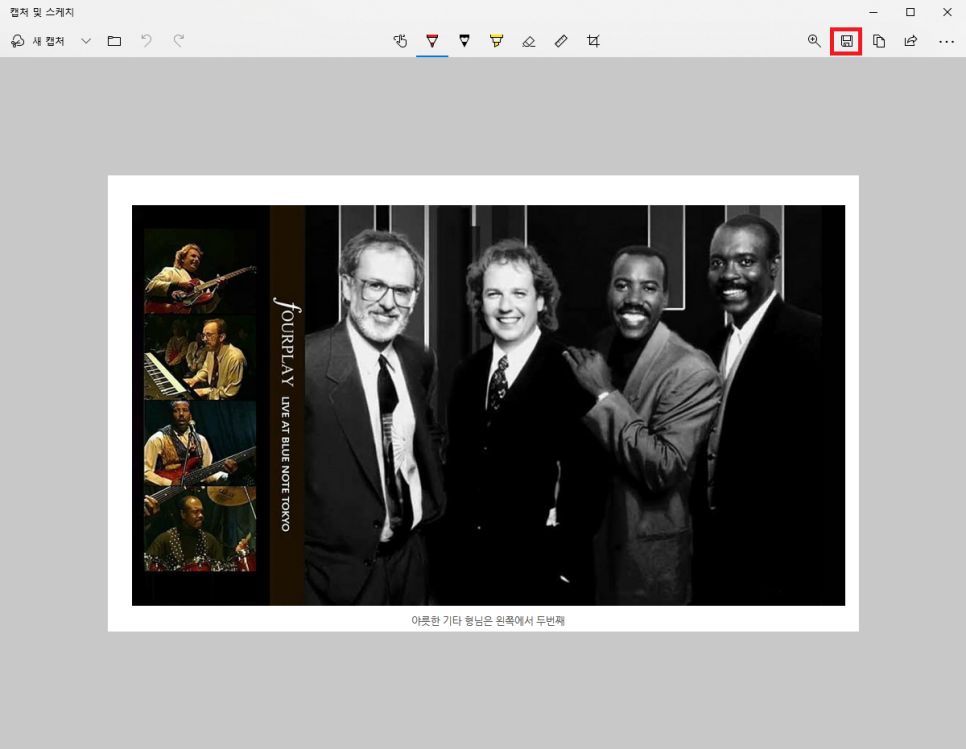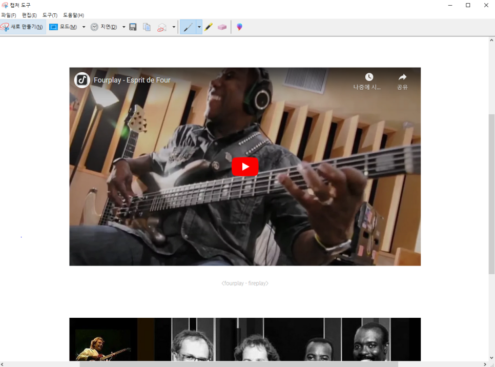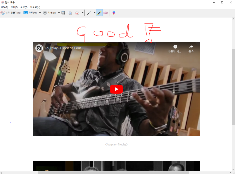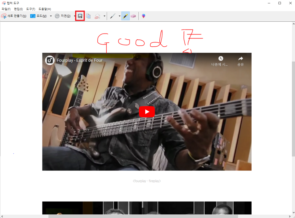 캡처한 후에는 위와 같은 "마무리 작업 창"이 뜨는데 펜 기능을 이용해 별도의 그림판으로 옮길 필요 없이 간단한 수정작업을 수행할 수 있습니다.