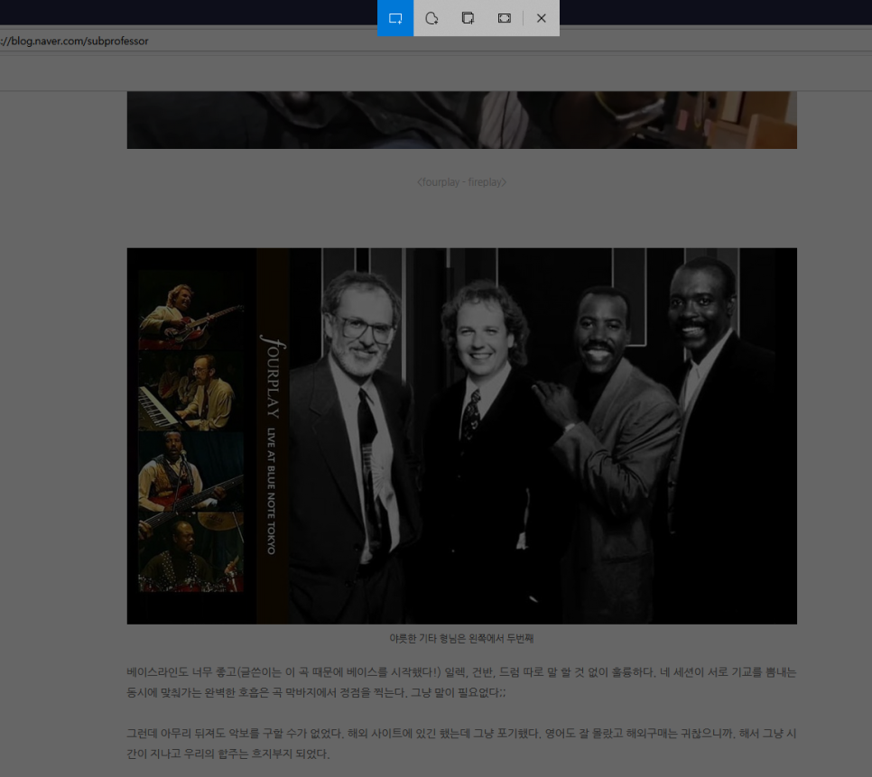 영역 캡처를 별도의 클릭 없이 빠르게 수행할 수 있는 네 번째 방법입니다. 개인적으로 4가지 캡처 방법 중 가장 선호하는 방법인데요, 단점을 꼽자면 이미지 파일로 자동저장되지 않는다는 점이 있습니다.(외부 프로그램인 PicPick의 경우 자동저장 설정 가능)