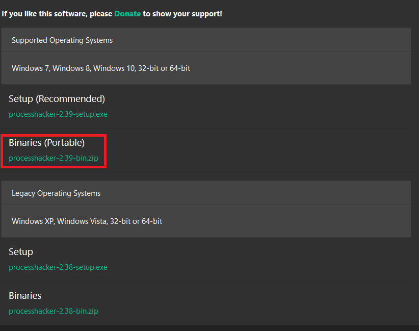 Setup은 설치용버전, Binaries는 무설치버전이다. Process Hacker 2 라는 것도 인터넷에 돌아다니는데 그냥 똑같다. 2.XX버전 자체가 Process Hacker 2다