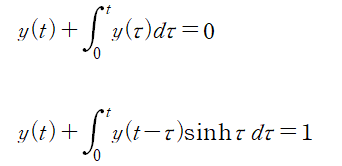 위 두 방정식처럼 해가 되는 함수인 y(t)의 적분형태가 포함된 방정식을 적분방정식이라고 합니다. 첫 번째 방정식의 경우 양변을 미분해서 해를 구하는 일반적인 미분방정식의 해를 구하듯 y(t)를 구할 수 있습니다. 그러나 두 번째 방정식의 경우 그게 불가능합니다. t로 미분을 해야 하는데 피적분함수 내에 t가 포함되어 있기 때문이죠. 이정도는 고등학교 미적분에서 다 배우는 상식.수준입니다. 아무튼 적분방정식의 형태는 위와 같습니다.