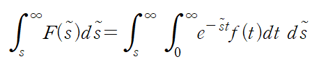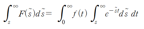 f(t)에 대한 라플라스 변환 F(s)은 다음 관계식을 만족합니다. s~는 문자의 혼동을 피하기 위해 사용한 것입니다. 합성곱 포스팅에서 나온 τ(tau)와 같은 역할입니다.