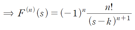 이에, F(s)를 s에 대해 n번 미분하면 아래와 같은 관계식이 성립함을 알 수 있습니다.