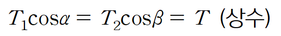 여기서 T는 줄에 작용하는 장력의 x성분입니다.