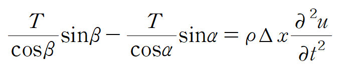 다음으로는 줄을 위아래로 움직이게 하는 힘에 대해 뉴턴의 힘-가속도 법칙을 적용해봅시다.
