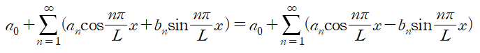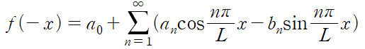주기함수 f(x)가 우함수일 경우 f(x)=f(-x)가 성립합니다. 즉 아래와 같습니다.