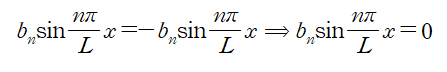 양변의 세 번째 항인 사인급수 항만 남기 때문에 해당 항은 0이 됩니다.
