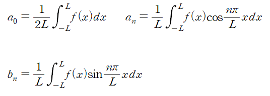 또한 주기가 f(x)의 주기가 L일 경우 다음과 같이 푸리에 급수가 간단해집니다.