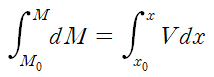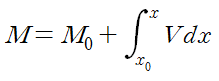 각 변수에 대해 적분해줍니다. 이때 M0은 x0에서의 전단력입니다.