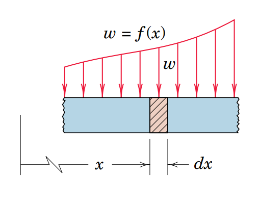 아래와 같이 빔에 분포하중 w=f(x)이 작용합니다.