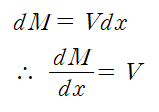 V와 M은 각각 x에서의 전단력과 굽힘모멘트입니다.