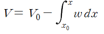 각 변수에 대해 적분해줍니다. 이때 V0은 x0에서의 전단력입니다.