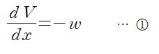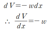 단위길이당 분포하중 w와 전단력 V의 관계는 다음과 같습니다.