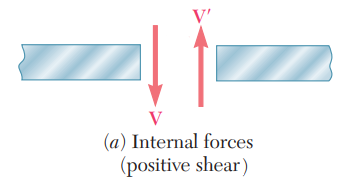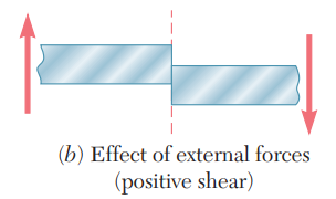 아래 그림은 외부 전단력으로, 전단이 발생하는 실제적인 방향과 같습니다. 또한 그림에서 나타나는 전단력의 방향을 양(+)의 전단력으로 정의합니다.