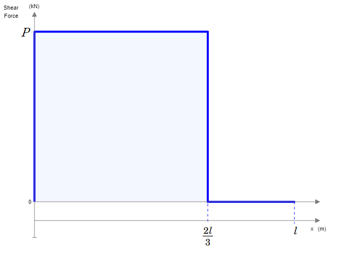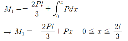 0<x< 2l/3 구간 즉 하중 P가 가해지기 전까지 구간에서는 별다른 하중이 작용하지 않기 때문에 P로 동일합니다.