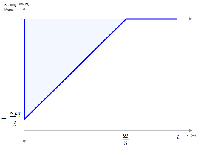 그러고는 딱히 발생하는 모멘트(여기서 모멘트는 힘에 의해 발생하는 모멘트가 아니라 순수하게 가해지는 우력)가 없으므로 전단력을 적분하여 굽힘모멘트 선도를 구합시다.